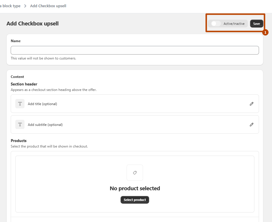 * Create a new Checkbox Upsell block.<br>