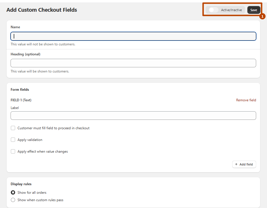 * Set the location where the Custom Checkout Fields should appear on the checkout page.