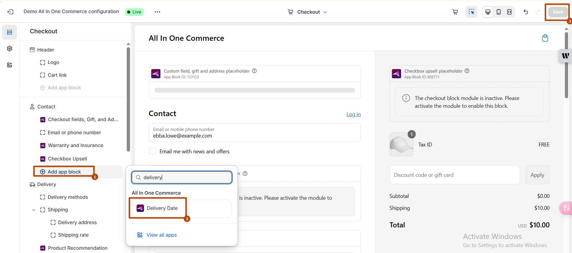 **Add the Block to Checkout:**