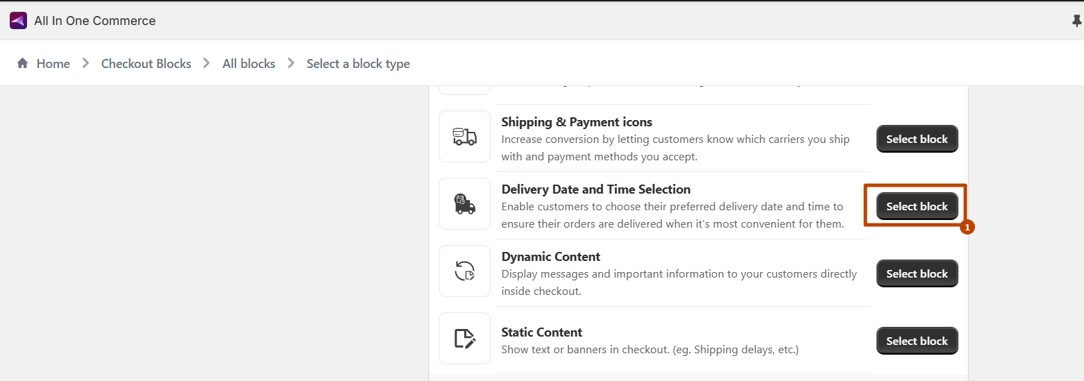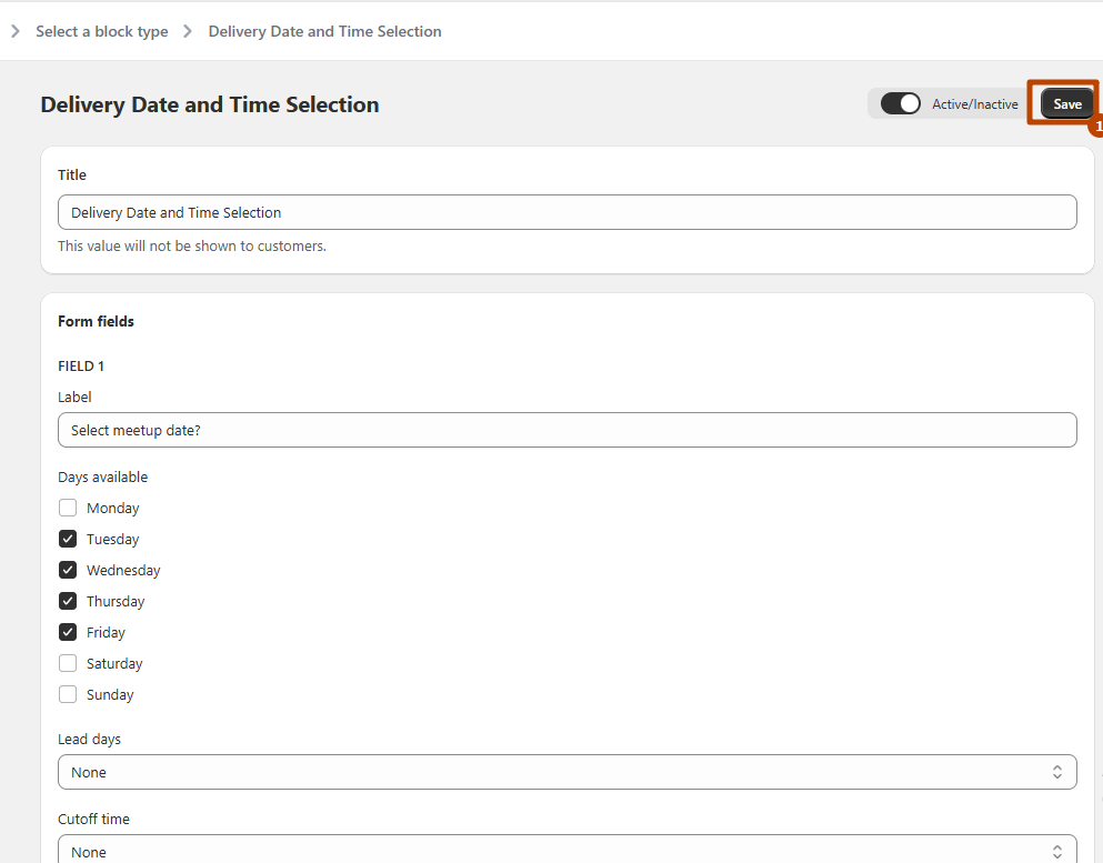 The Delivery Date and Time Selection block allows customers to choose their preferred delivery date and time at checkout. This ensures that their orders are delivered when it's most convenient for them, enhancing the shopping experience. Configure rules and settings for each date selection field, such as blackout dates, lead time, or time slot restrictions.