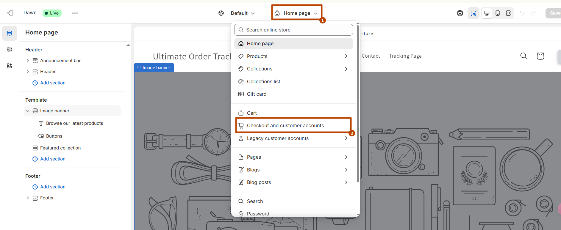 * On customizer select page "Checkout and customer accounts".<br>
