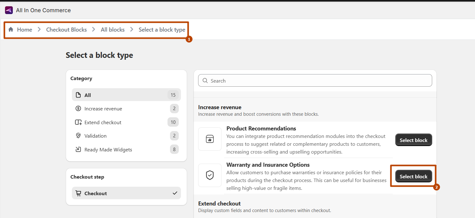 The Warranty and Insurance Options block allows customers to purchase warranties or insurance policies for their products during checkout. This is particularly useful for businesses selling high-value or fragile items, offering additional protection and peace of mind to customers.