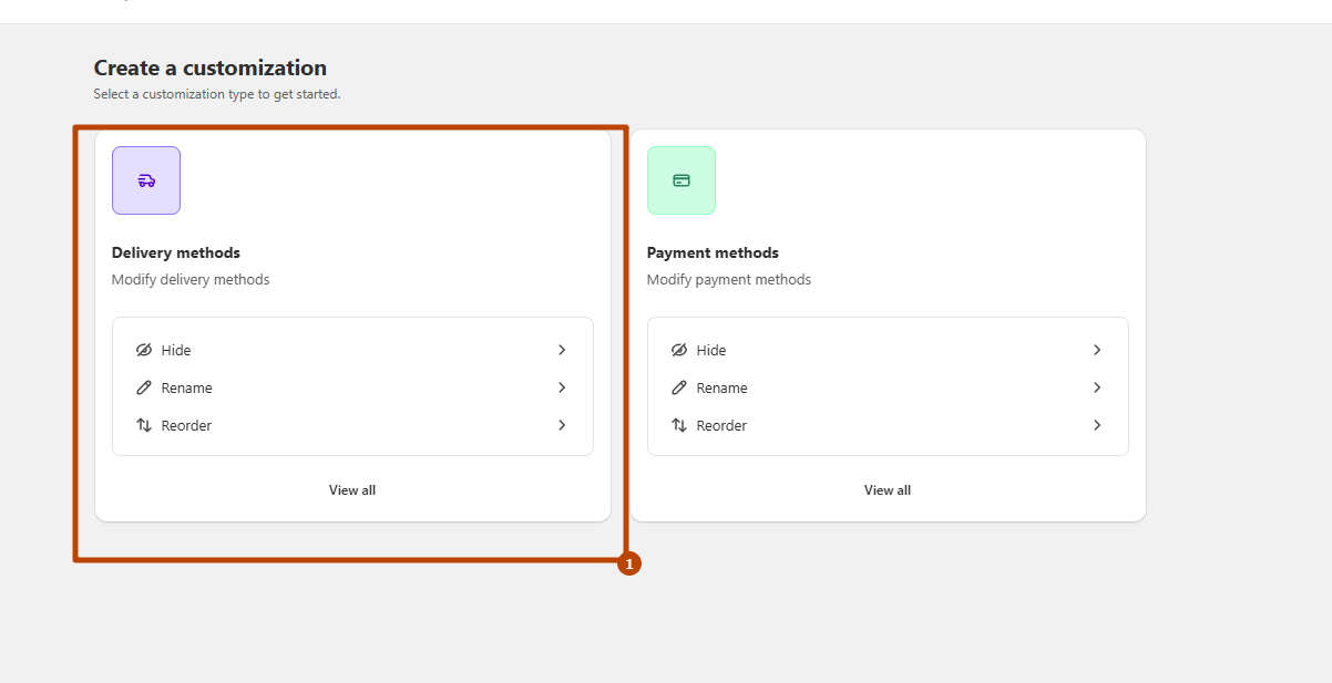 This delivery methods customization feature of delivery methods is allow to hide, rename and reorder the delivery methods on the checkout page according to the set rules in the app.<br>